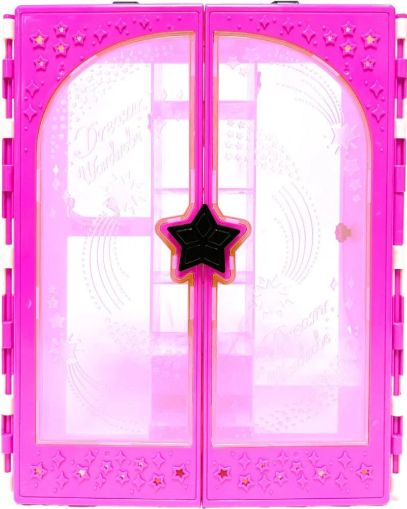 تأتي الدمية مع ملابس وإكسسوارات متنوعة.