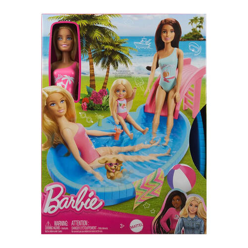 - يمكنك اللعب خارجا وقضاء وقت ممتع في الشمس. تأتي دمية باربي مع كل ما يمكن أن تحتاجه لقضاء فترة ما بعد الظهيرة في فصل الصيف: حمام سباحة وزحليقة وإكسسوارات.