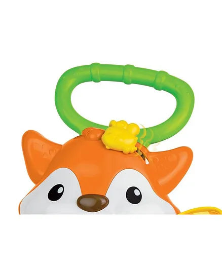 • أثناء الجلوس، يمكن للأطفال استكشاف أنشطة تفاعلية مثل نحلة منزلقة، مروحة دوارة، خرز منزلق، تروس متحركة، مرآة آمنة للأطفال، وأربعة أزرار صوتية.