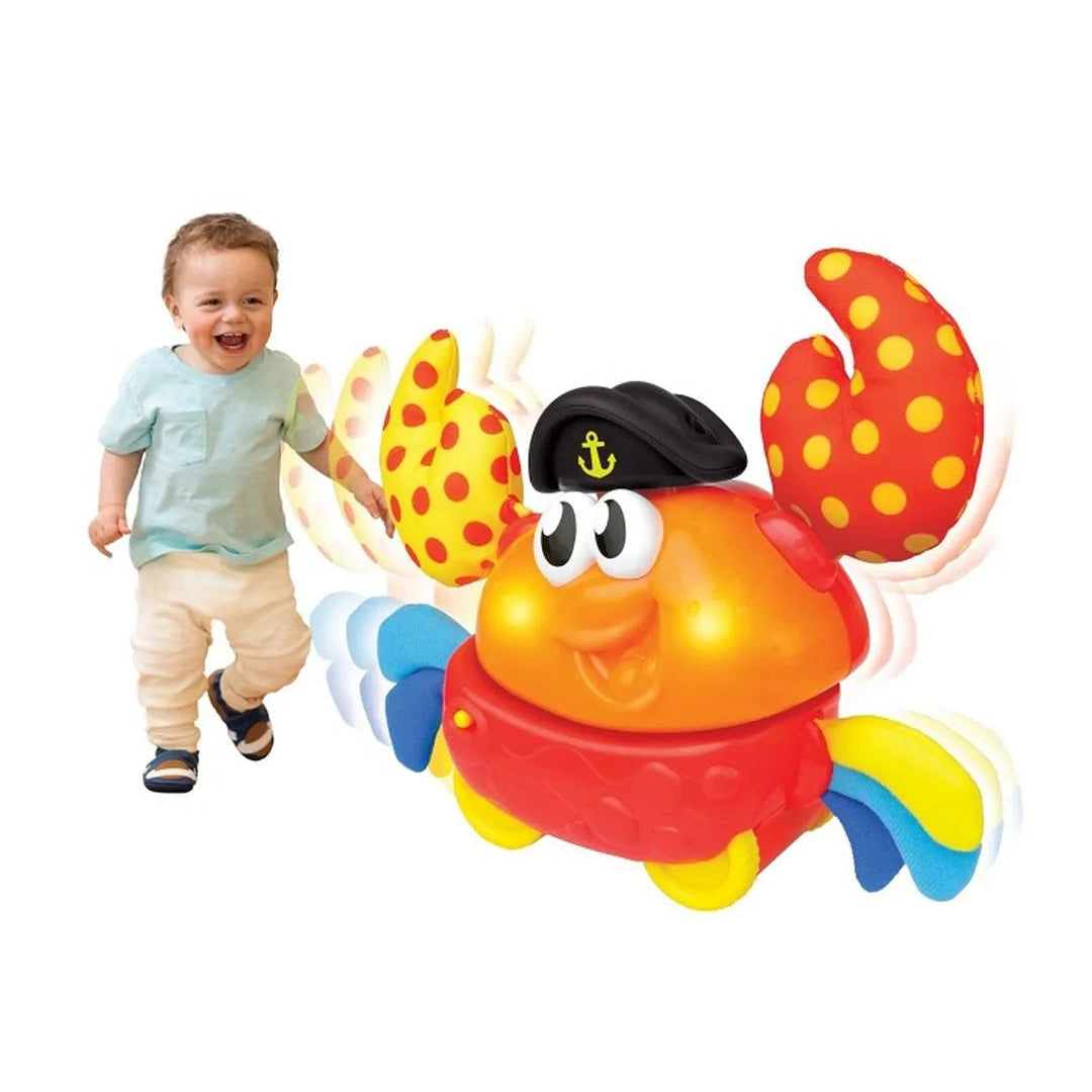 • بضغطة زر واحدة، ينطلق السلطعون من جانب إلى آخر، مُثيرًا عقول الصغار ومُشجعًا على الحركة الجسدية.