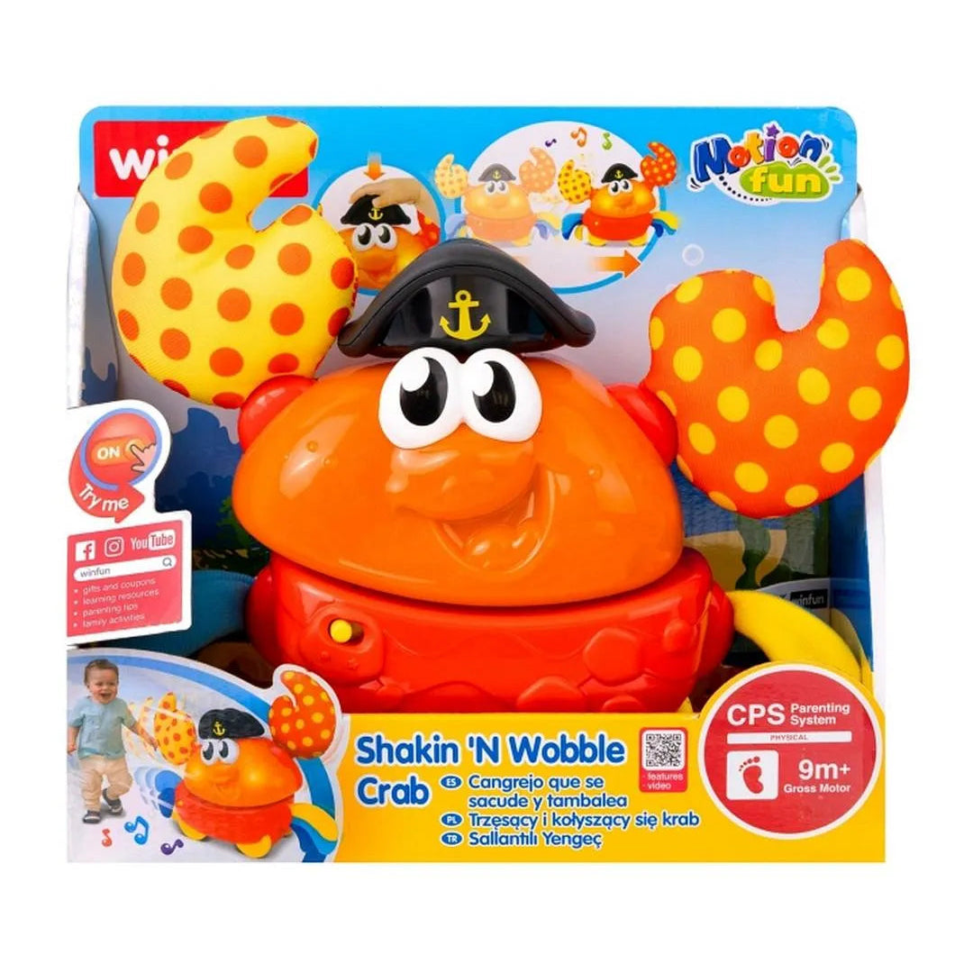 • السلطعون شاكين آند ووبل مُجهّز بمجموعة من الأصوات والألحان الجذابة التي تُعزز التجربة الحسية، وتُحفّز الحواس السمعية، وتُعزز التطور المعرفي.