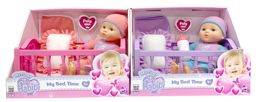 - نقدم لك دمية بيبي حبيببي مقاس 30 سم، الرفيق المثالي للعب وقت النوم. هذه الدمية ذات الجسم الناعم مثالية للعناق وتأتي مع سرير مريح وإكسسوارات.