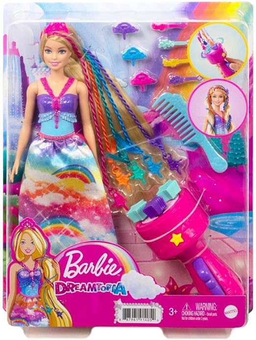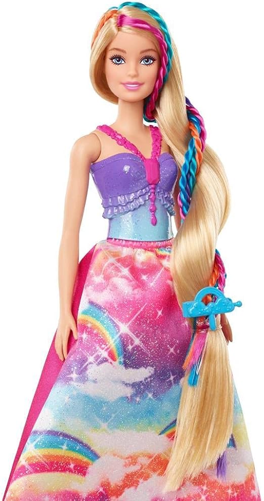 - تتميز دمية الأميرة باربي هذه بشعر طويل للغاية يبلغ طوله 8.5 بوصة، ووصلات شعر قوس قزح للالتواء والتضفير، وأداة تجعل التصفيف ممتعًا وسهلاً.