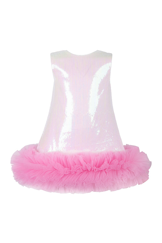 • تفاصيل التول المكشكشة في أسفل الفستان تضيف جوًا لطيفًا ومبهجًا، مما يجذب خيال الأطفال.