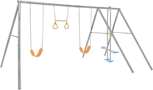 • تتضمن أرجوحة مرحة، وأرجوحة بحلقات، وأرجوحتين قابلتين لتعديل الارتفاع
