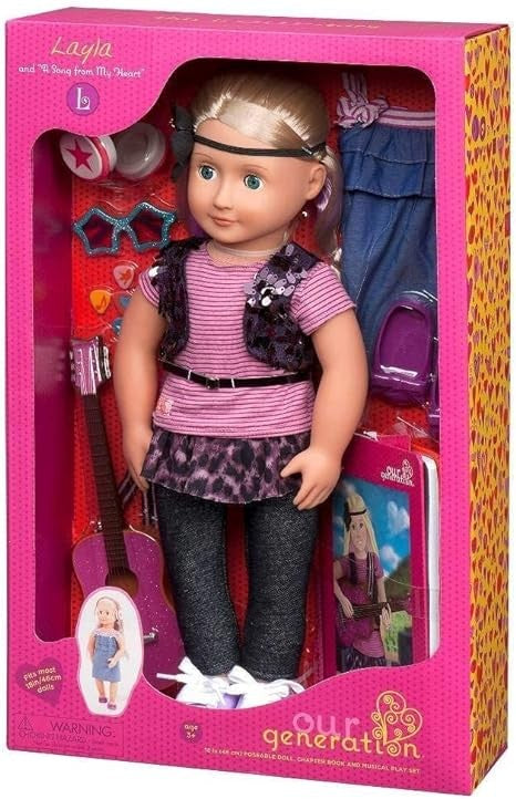 - ستأسر موسيقاكم خيال الجمهور في كل مكان مع دمية أور جينيريشن الفاخرة مقاس 18 بوصة - ليلى، دمية جميلة قابلة للحركة بعيون زرقاء وشعر أشقر طويل مصبوغ بلون أرجواني روك أند رول، وممتعة للتمشيط والتصفيف.