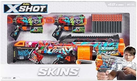 - تتضمن مجموعة اكس شوت مسدس واحد ومسدس مزينين بجلود، وهي مثالية للمصممين أو لأي شخص يرغب في خوض معركة على طراز الشارع!